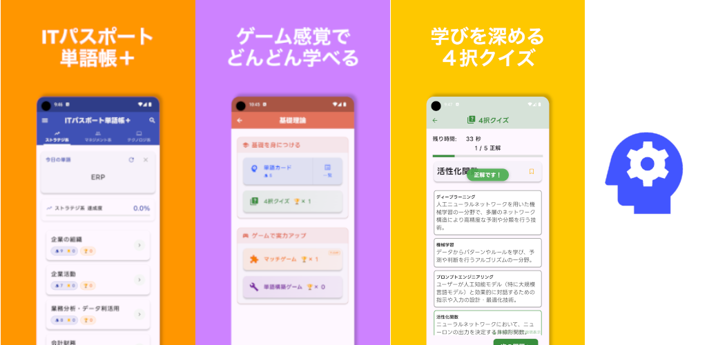 「ITパスポート単語帳+」は、ITパスポート試験に出題される重要用語を分野ごとに効率よく学習できるアプリです。過去問演習を始める前の導入学習や、試験直前の総仕上げにも最適。ゲーム感覚で進められるクイズ形式や単語カード機能を活用して、短時間で着実に知識を深めましょう。忙しい社会人や学生の方も、スキマ時間でサクッと勉強できます。今すぐアプリをダウンロードして、ITパスポート試験合格への第一歩を踏み出しましょう!